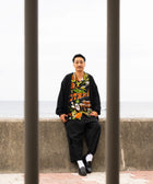 沖縄の「文化・自然・心」をEanbeらしく表現するシリーズ「RYUKYU COLLECTION」より、「バスケ」をテーマにした総柄のロングスリーブアロハシャツ。アートワークはイラストレーターの髙城 琢郎氏が担当。