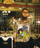 Aloha shirt with a full pattern depicting a duel with a tengu that resides in your heart. The artwork is handled by illustrator ICHIRAKU STUDIO.