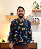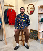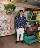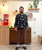 「競馬」をテーマに、ポップにデフォルメされた騎手と競走馬を散りばめた総柄のアロハシャツ「DARK HORSE」のロングスリーブ。午年である2026年に凱旋復活。アートワークはイラストレーターのAKI ISHIBASHI氏が担当。