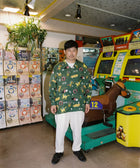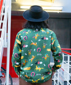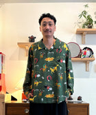 「競馬」をテーマに、ポップにデフォルメされた騎手と競走馬を散りばめた総柄のアロハシャツ「DARK HORSE」のロングスリーブ。午年である2026年に凱旋復活。アートワークはイラストレーターのAKI ISHIBASHI氏が担当。